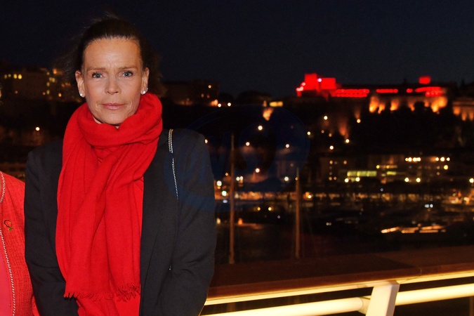 excl. Ksiezna Stefania z Monako w czerwieni na spotkaniu Femmes Leaders Mondiales Monaco