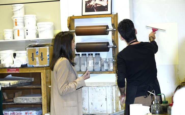 Krolowa Letizia podczas wizyty w Engraving And Design School