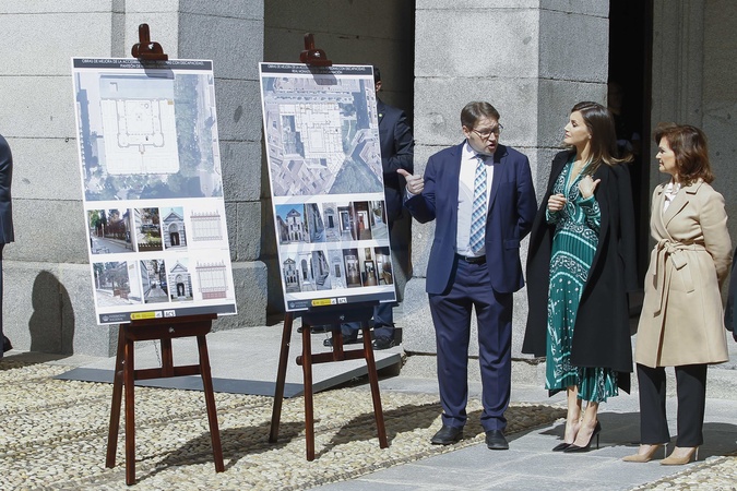 Krolowa Letizia w zielonej, plisowanej sukience w Real Monasterio
