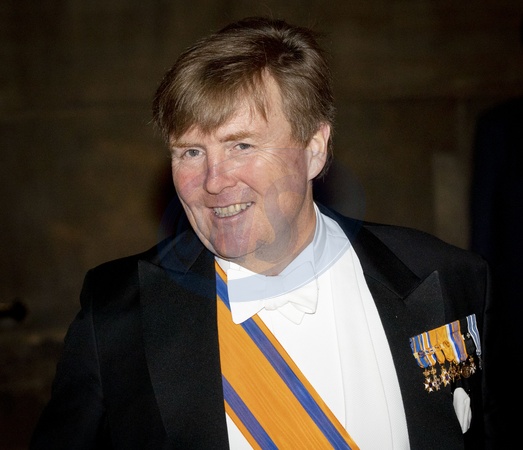 Krolowa Maxima w bialej sukni i krol Willem Alexander na corocznej gali dla korpusu dyplomatycznego