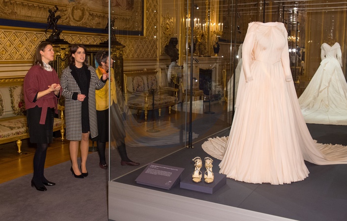 Ksiezniczka Eugenia oglada swoja suknie slubna na wystawie