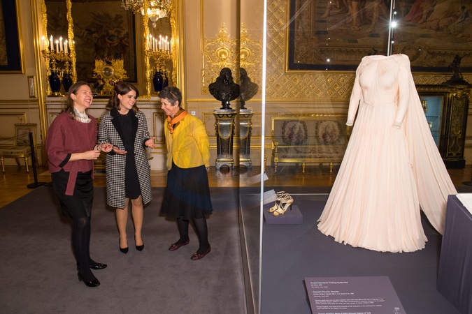Ksiezniczka Eugenia oglada swoja suknie slubna na wystawie