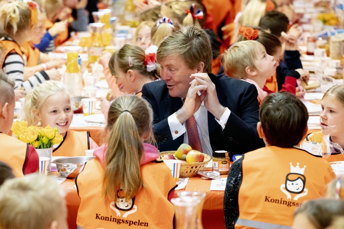 Krol Willem Alexander z dziecmi ze szkoly Arke school Lemmer