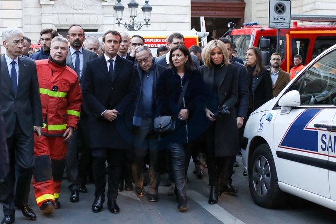 Macronowie i inni przy Katedrze Notre Dame