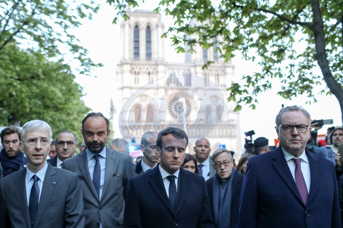 Macronowie i inni przy Katedrze Notre Dame