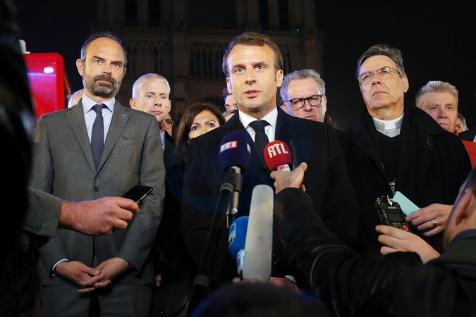 Macronowie i inni przy Katedrze Notre Dame