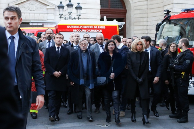 Macronowie i inni przy Katedrze Notre Dame