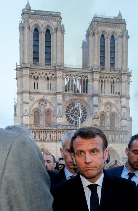 Macronowie i inni przy Katedrze Notre Dame