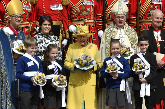 Zolta krolowa Elzbieta II z wnuczka podczas Royal Maundy Service