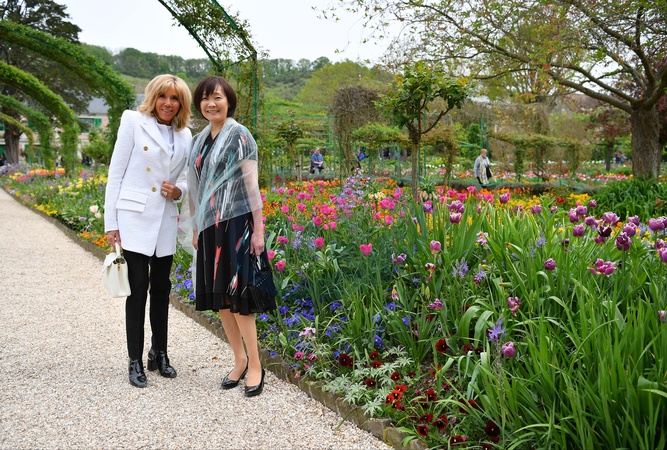 Brigitte Macron z zona japonskiego premiera odwiedzila Giverny