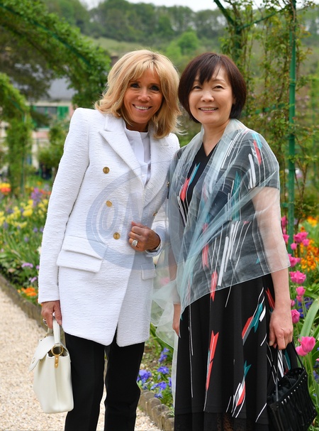 Brigitte Macron z zona japonskiego premiera odwiedzila Giverny