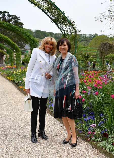 Brigitte Macron z zona japonskiego premiera odwiedzila Giverny