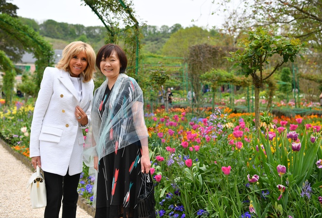 Brigitte Macron z zona japonskiego premiera odwiedzila Giverny