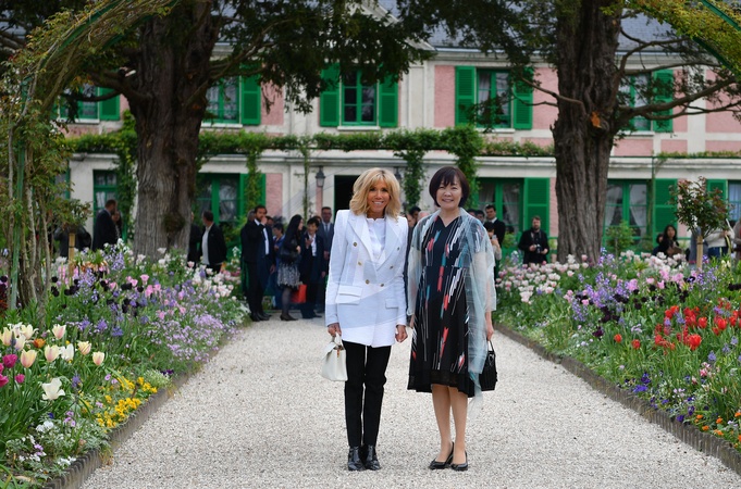 Brigitte Macron z zona japonskiego premiera odwiedzila Giverny