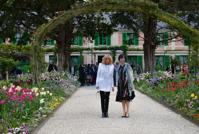 Brigitte Macron z zona japonskiego premiera odwiedzila Giverny