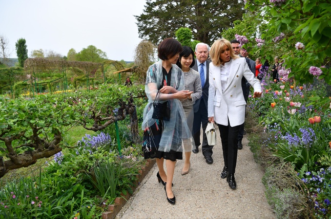 Brigitte Macron z zona japonskiego premiera odwiedzila Giverny