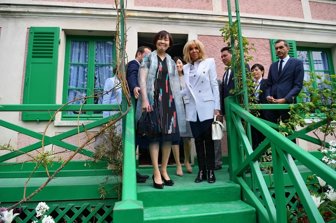 Brigitte Macron z zona japonskiego premiera odwiedzila Giverny