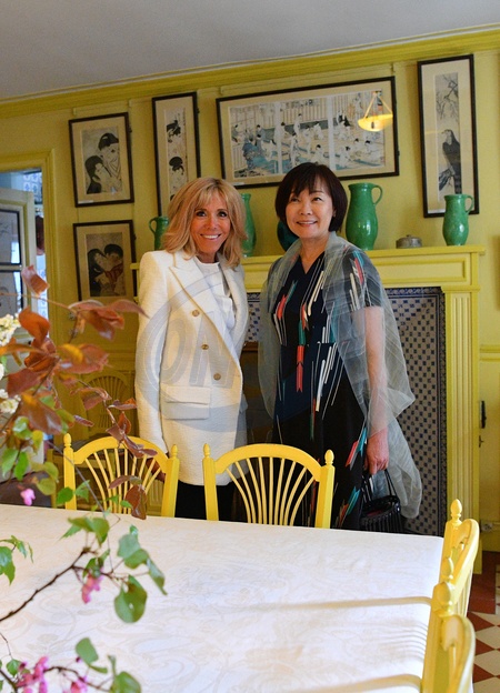 Brigitte Macron z zona japonskiego premiera odwiedzila Giverny
