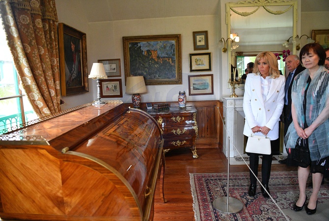 Brigitte Macron z zona japonskiego premiera odwiedzila Giverny