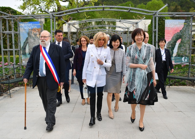Brigitte Macron z zona japonskiego premiera odwiedzila Giverny
