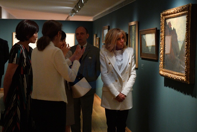 Brigitte Macron z zona japonskiego premiera odwiedzila Giverny