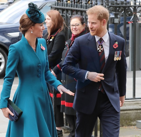 Ksiezna Kate i ksiaze Harry podczas Anzac Day Service of Commemoration