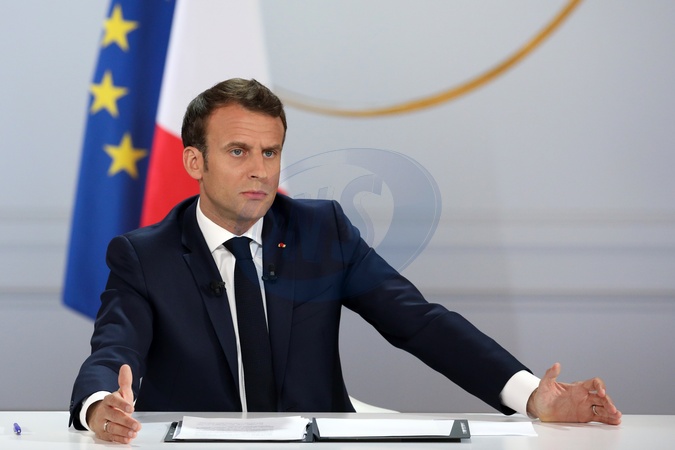 Emmanuel Macron podczas konferencji w Palacu Elizejskim