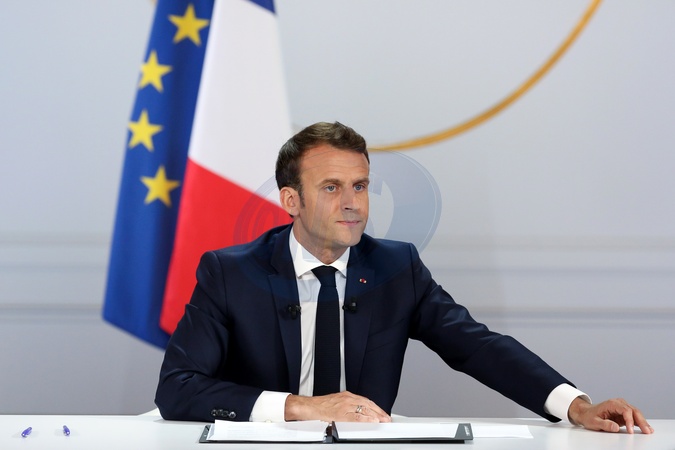 Emmanuel Macron podczas konferencji w Palacu Elizejskim