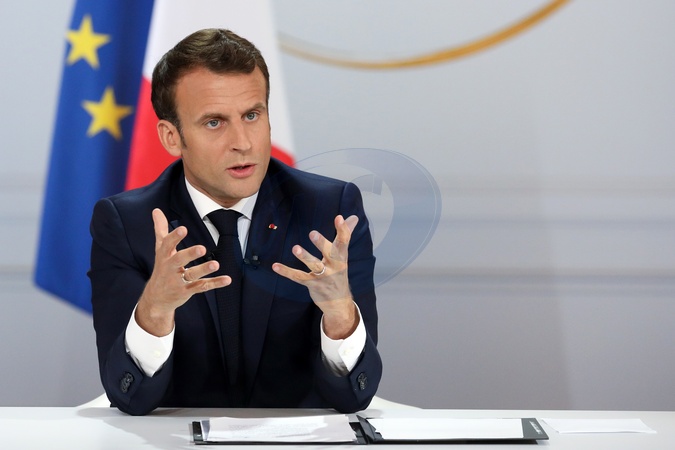 Emmanuel Macron podczas konferencji w Palacu Elizejskim