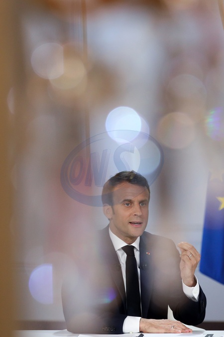 Emmanuel Macron podczas konferencji w Palacu Elizejskim