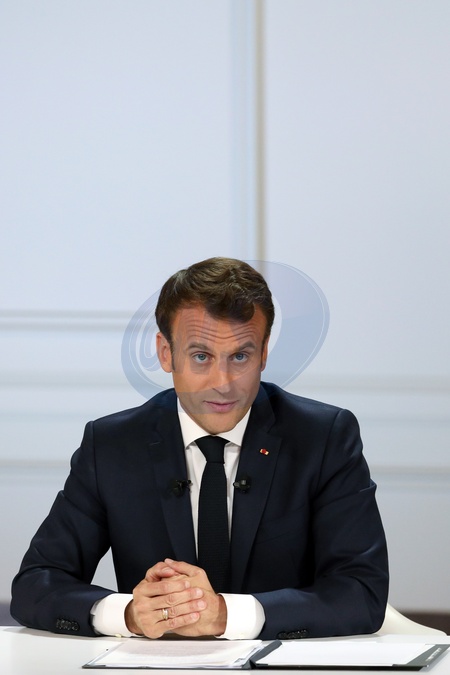 Emmanuel Macron podczas konferencji w Palacu Elizejskim