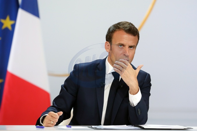 Emmanuel Macron podczas konferencji w Palacu Elizejskim