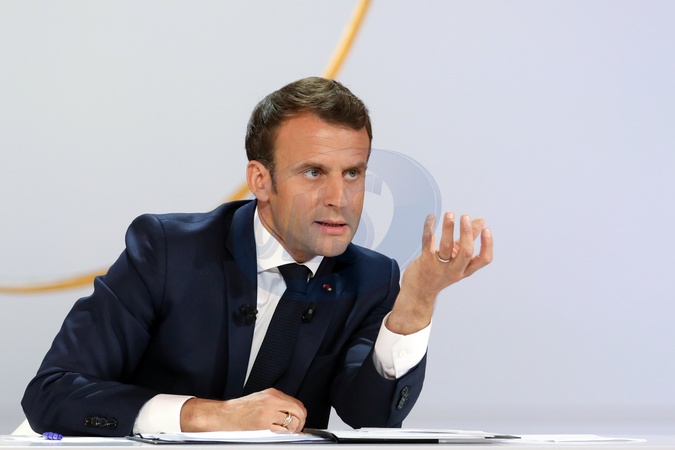 Emmanuel Macron podczas konferencji w Palacu Elizejskim