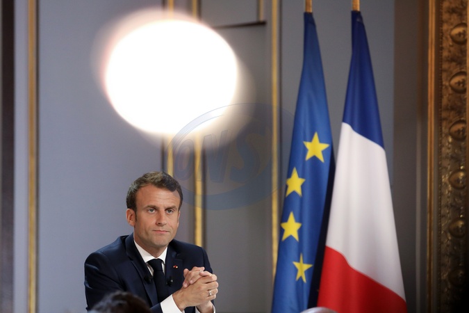Emmanuel Macron podczas konferencji w Palacu Elizejskim