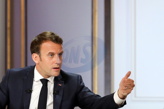 Emmanuel Macron podczas konferencji w Palacu Elizejskim