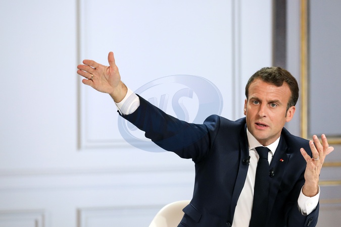 Emmanuel Macron podczas konferencji w Palacu Elizejskim
