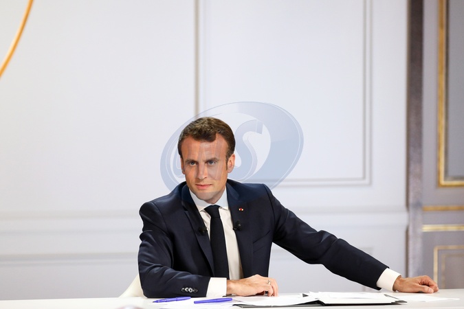 Emmanuel Macron podczas konferencji w Palacu Elizejskim