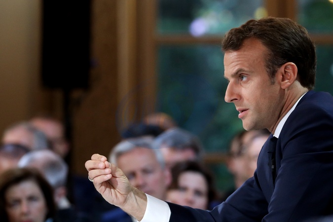 Emmanuel Macron podczas konferencji w Palacu Elizejskim