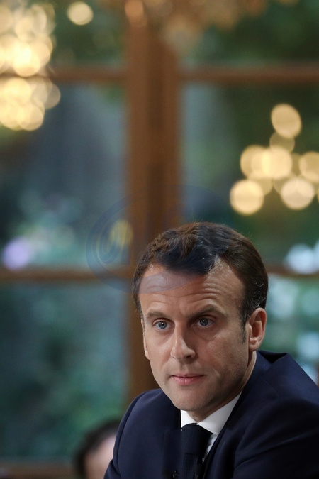 Emmanuel Macron podczas konferencji w Palacu Elizejskim