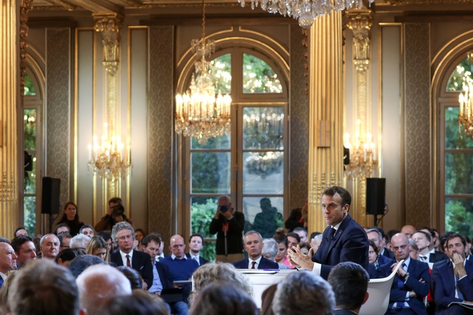 Emmanuel Macron podczas konferencji w Palacu Elizejskim