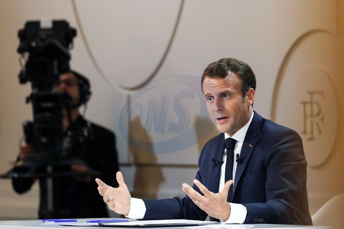 Emmanuel Macron podczas konferencji w Palacu Elizejskim