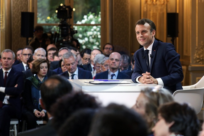 Emmanuel Macron podczas konferencji w Palacu Elizejskim