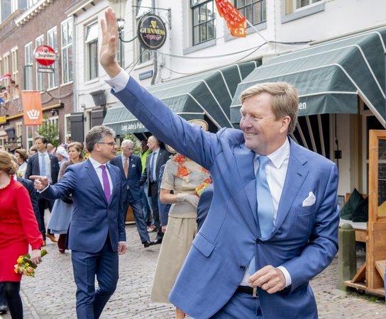Holenderski Krol z zona i corkami podczas Kings Day Celebrations