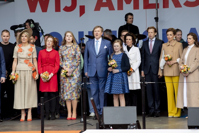Holenderski Krol z zona i corkami podczas Kings Day Celebrations