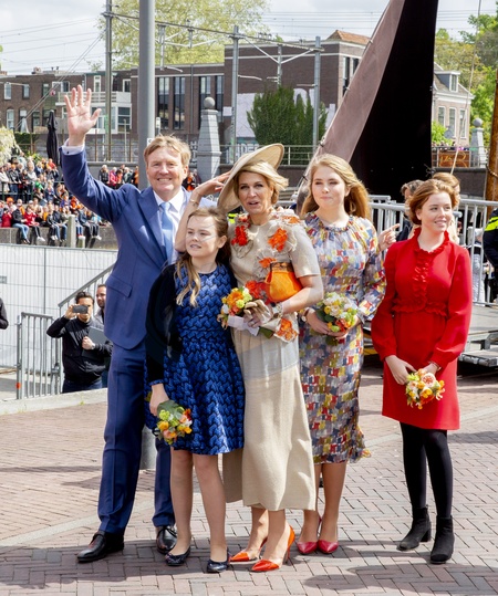 Holenderski Krol z zona i corkami podczas Kings Day Celebrations