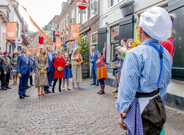 Holenderski Krol z zona i corkami podczas Kings Day Celebrations