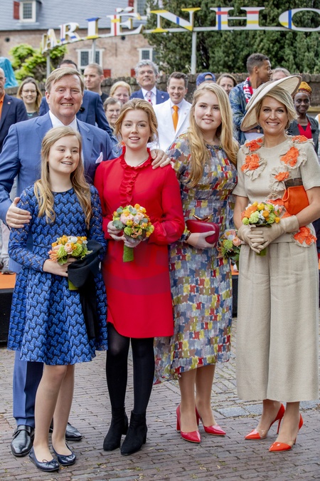 Holenderski Krol z zona i corkami podczas Kings Day Celebrations