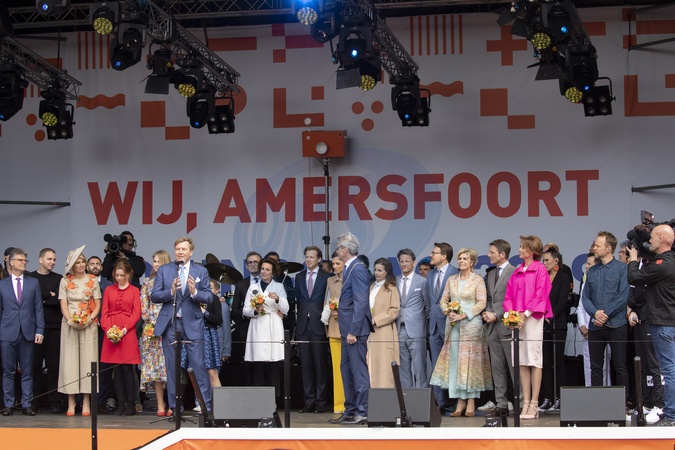 Holenderski Krol z zona i corkami podczas Kings Day Celebrations
