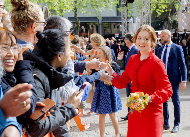 Holenderski Krol z zona i corkami podczas Kings Day Celebrations