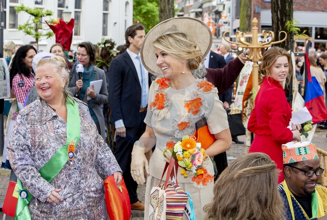 Holenderski Krol z zona i corkami podczas Kings Day Celebrations